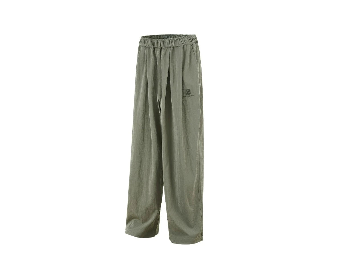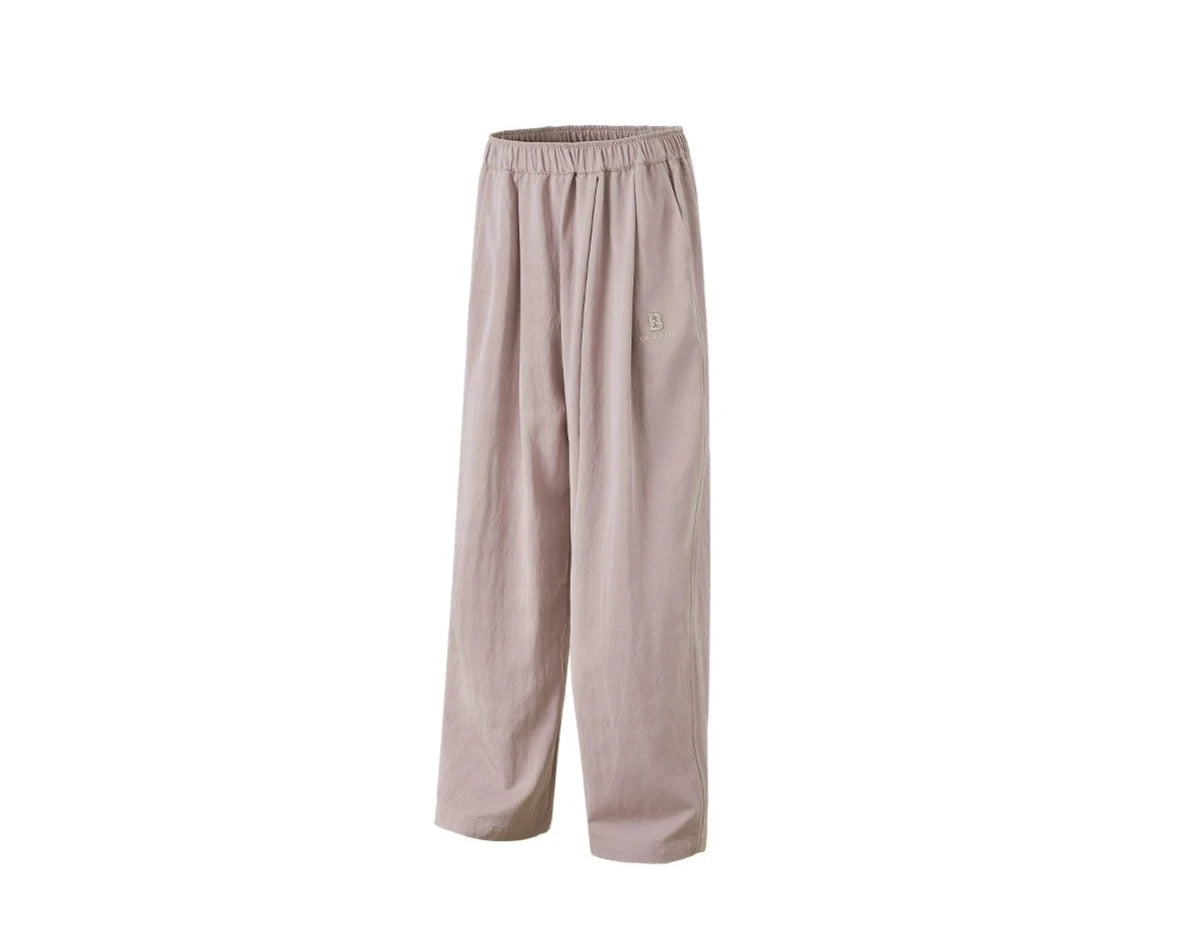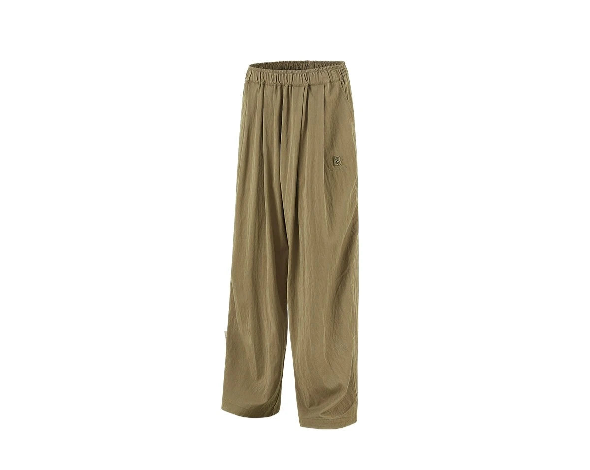 BJHG relaxed-fit pants, elasticized waistband, four-pocket styling, embroidered logo patch and pleats at front.