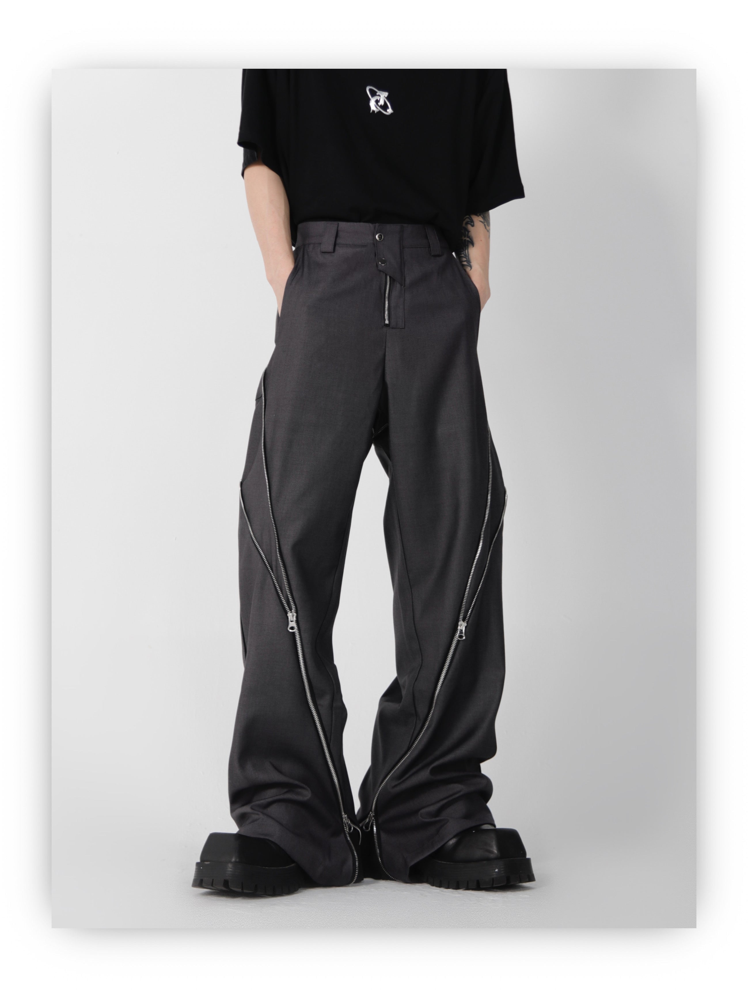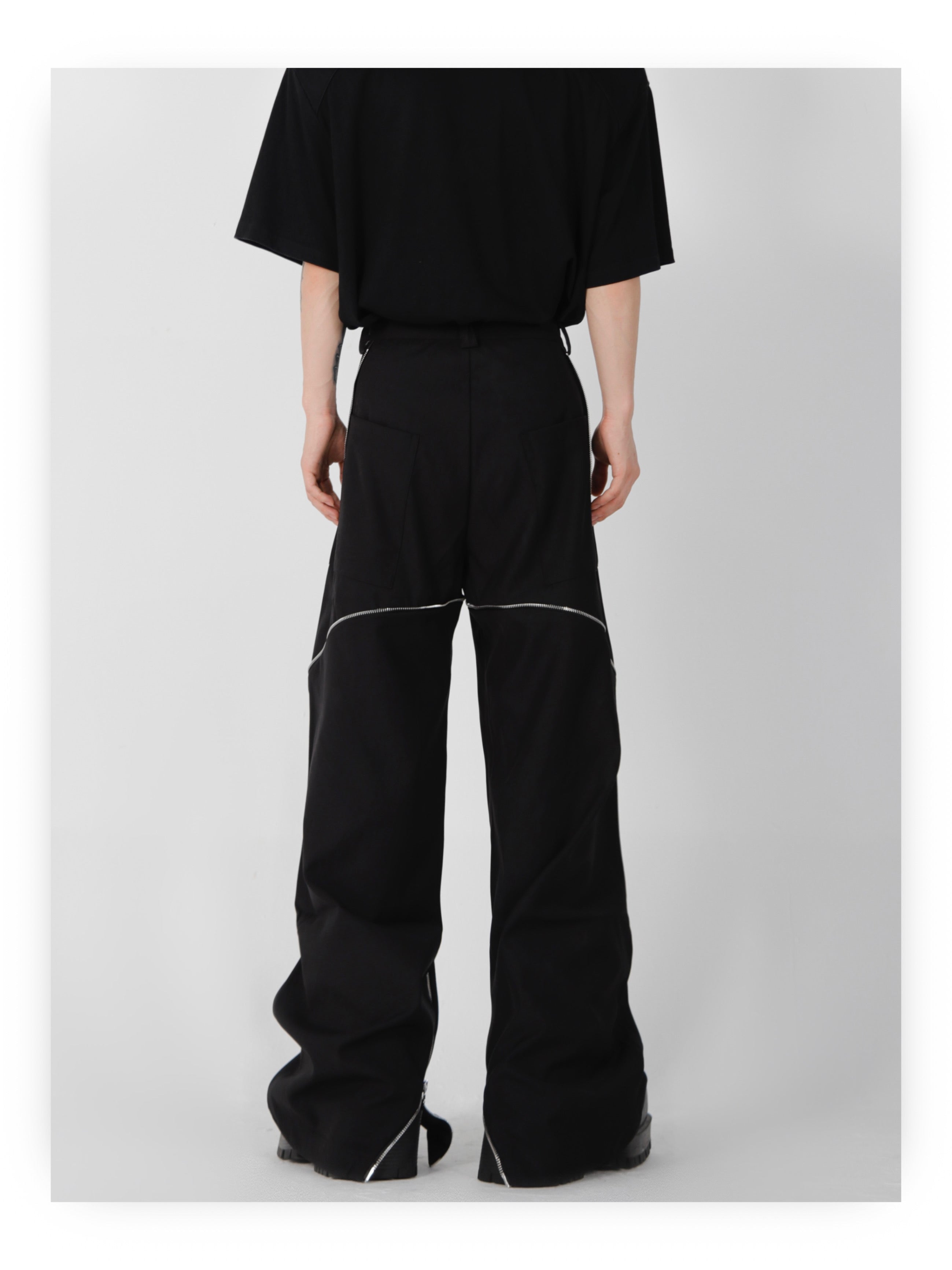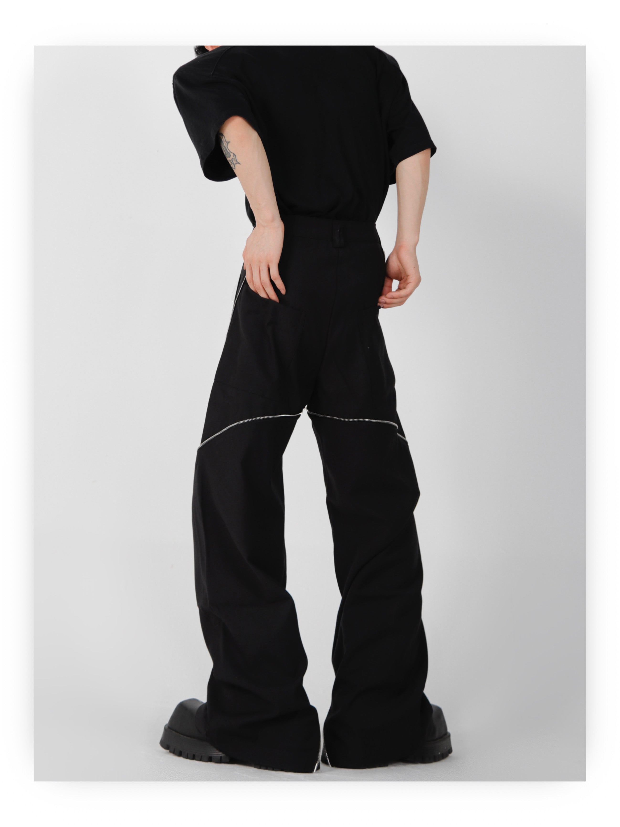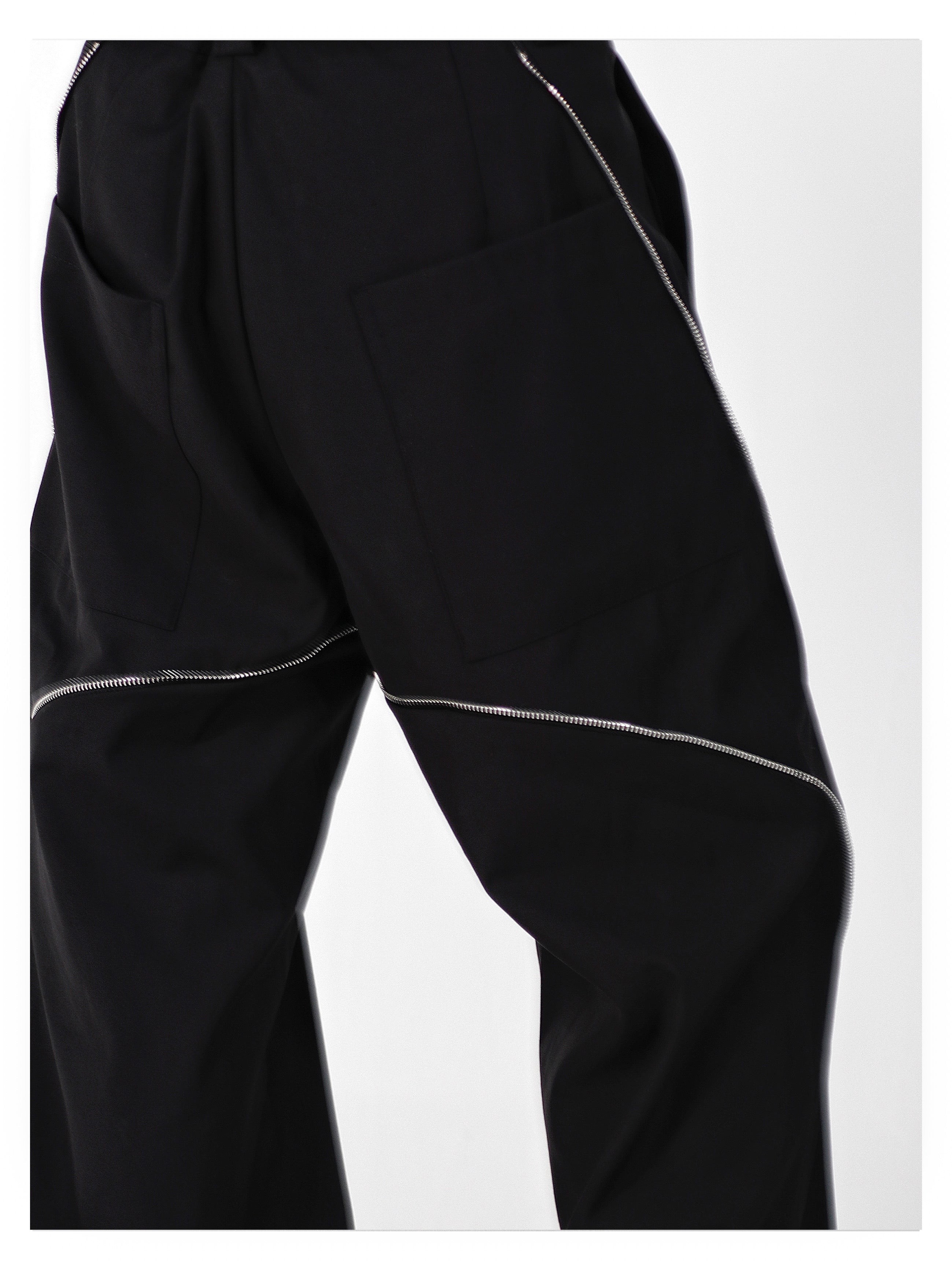 CulturE polyester cargo pants, two-pocket styling, two-button closure, belt loops, exposed zip-fly, zip expansion panel at outseams.