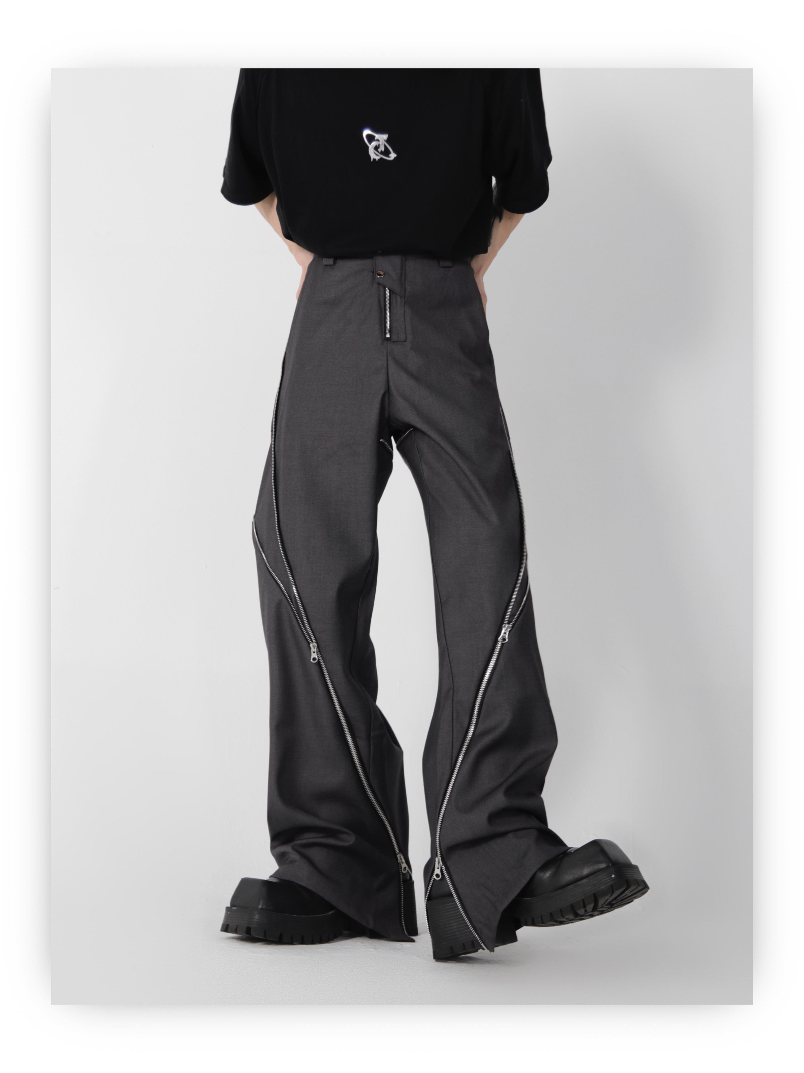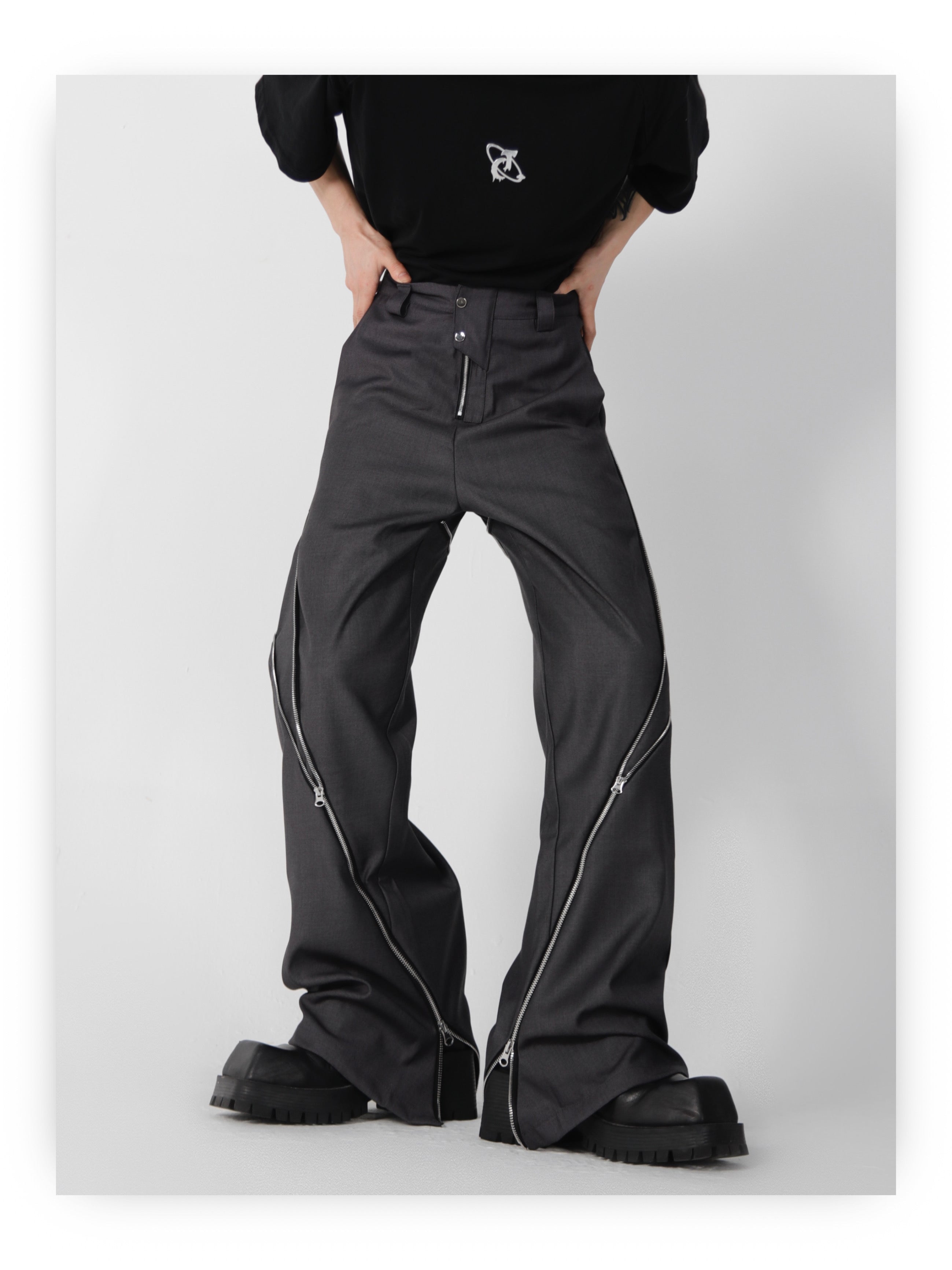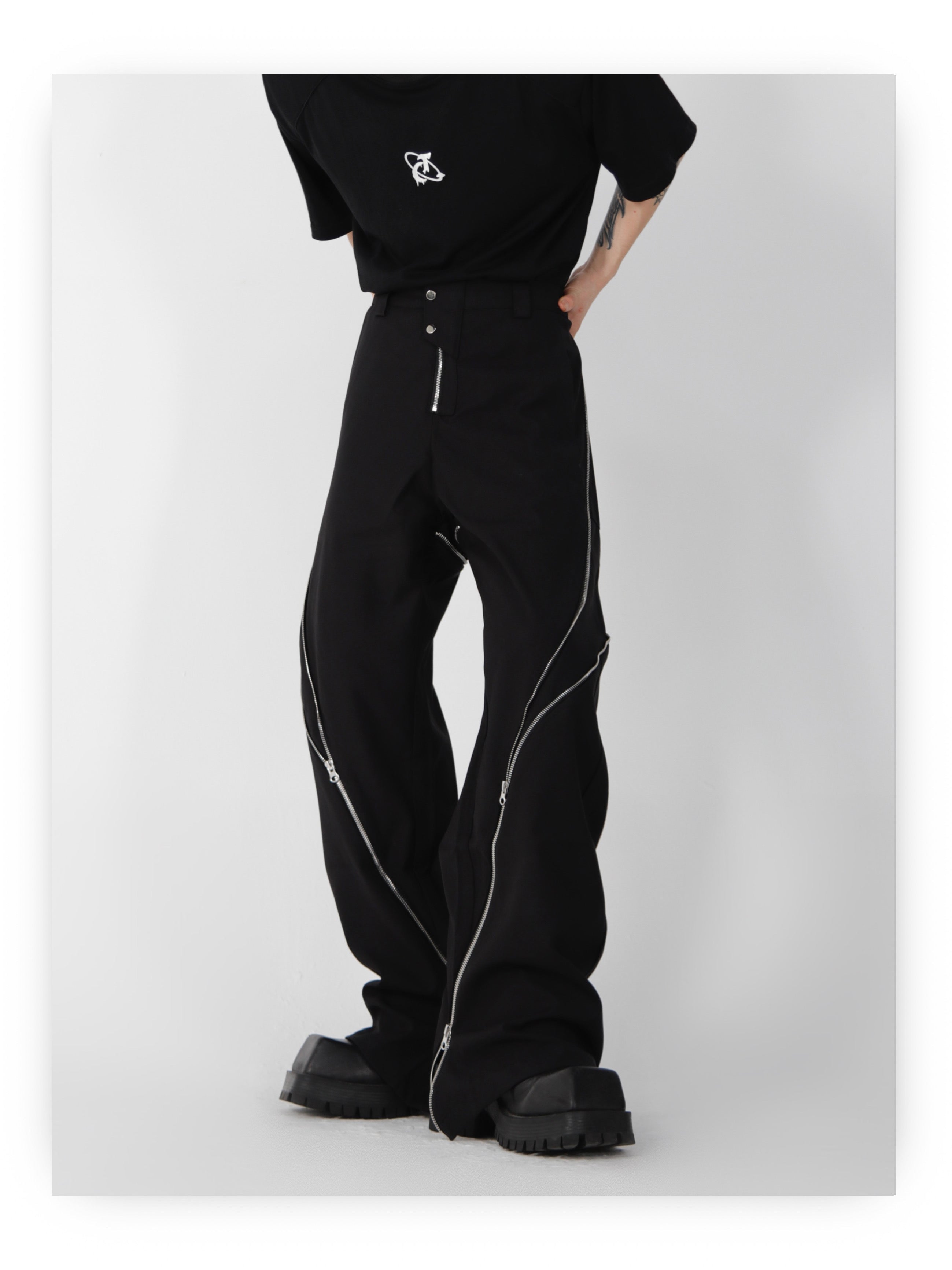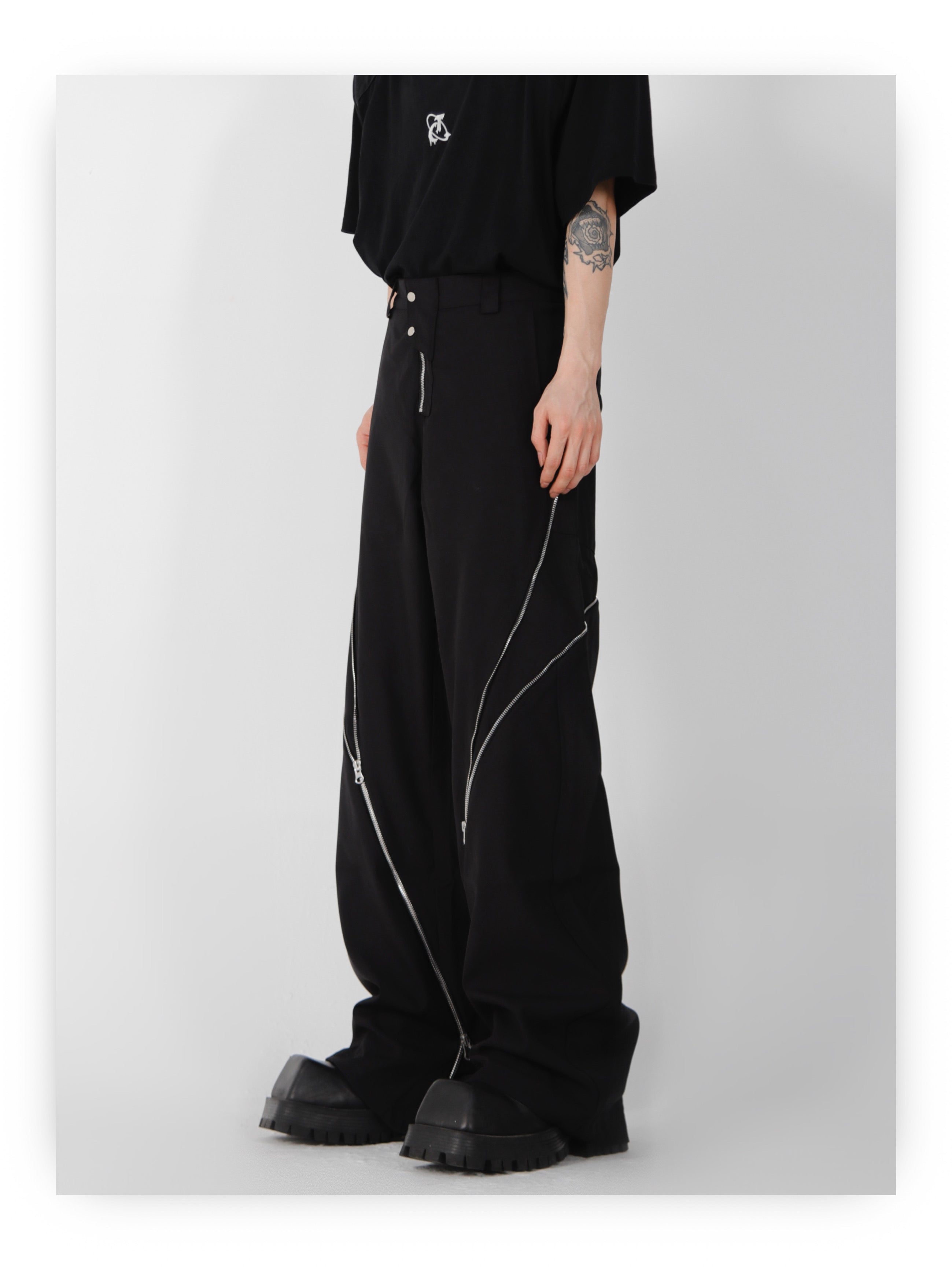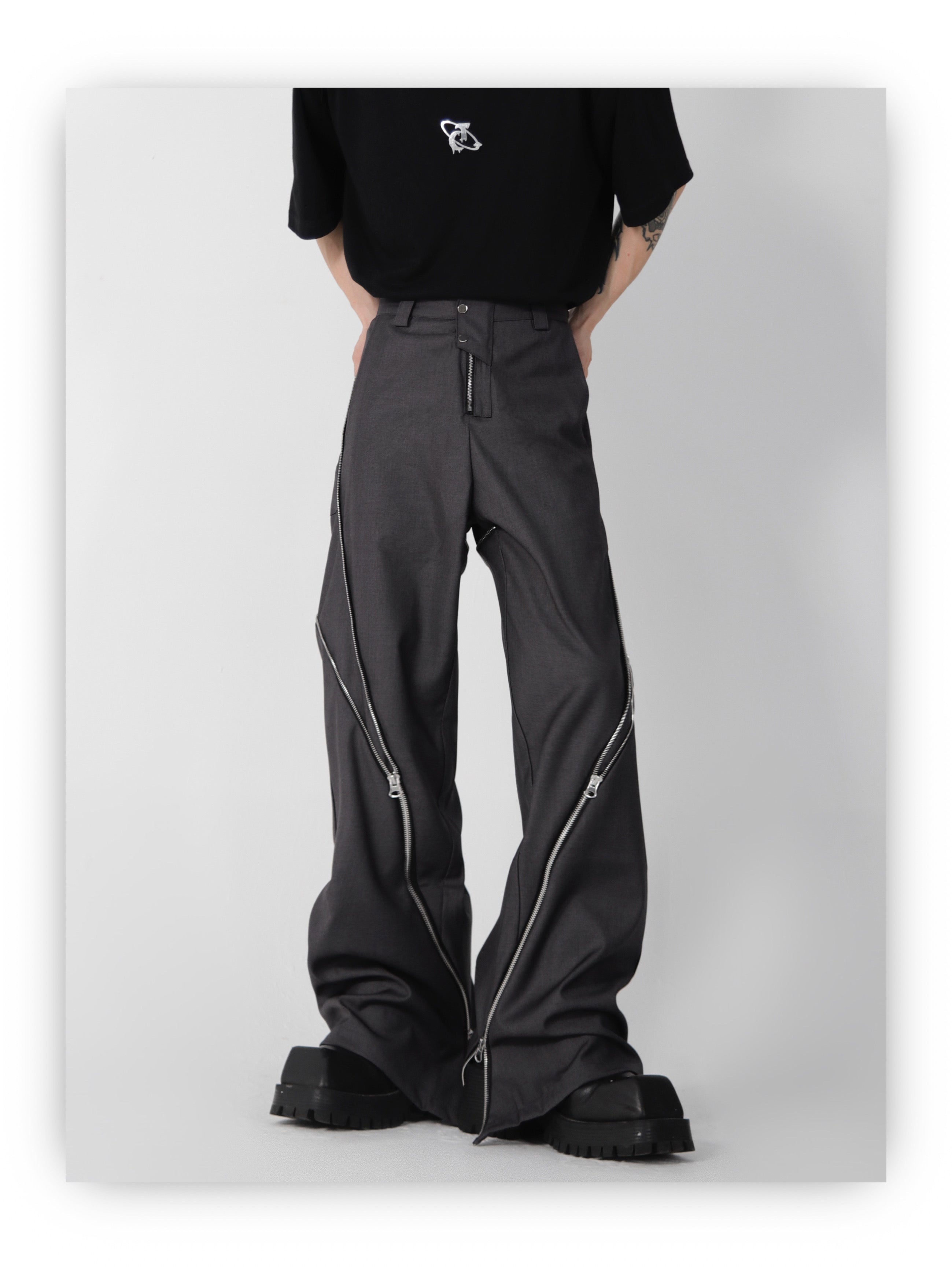 CulturE polyester cargo pants, two-pocket styling, two-button closure, belt loops, exposed zip-fly, zip expansion panel at outseams.