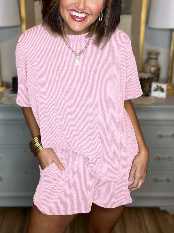 Stay on trend this season in our Ribbed Top and Short Set . We especially love the plain fabric and think this piece will be a new favorite in your closet!