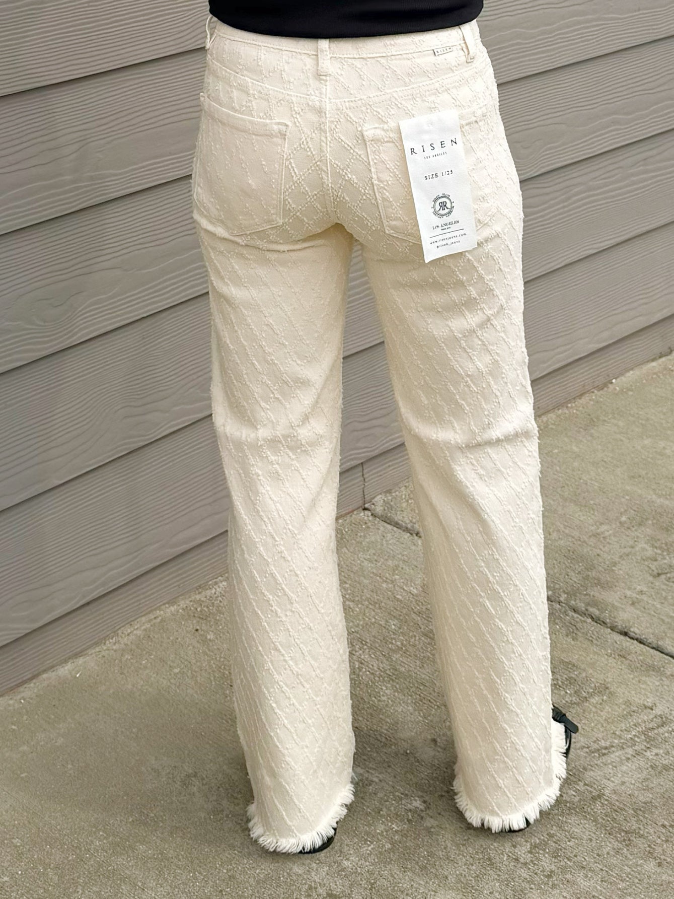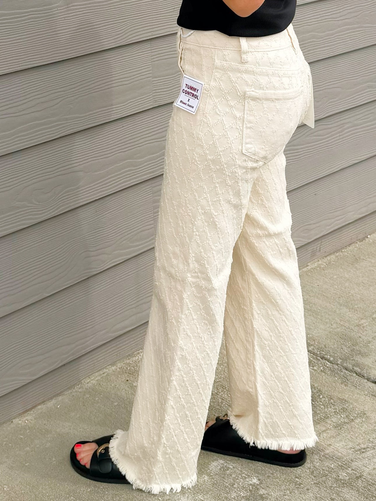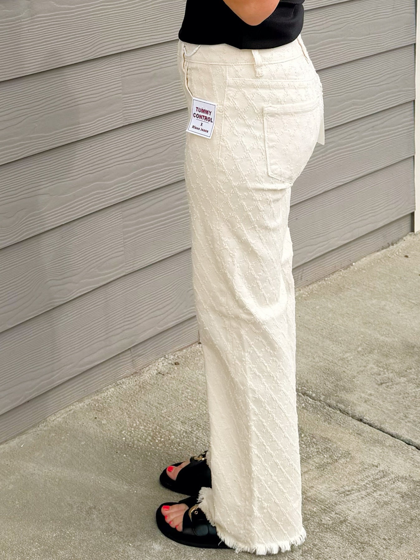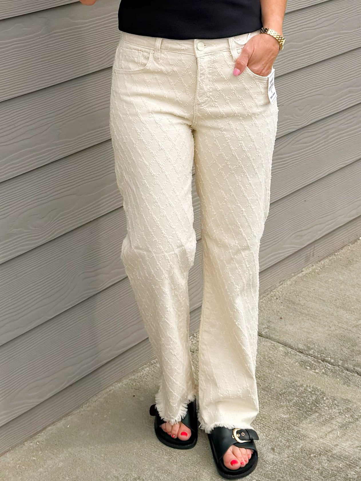 A polished ankle straight jean with subtle texture and built-in tummy control that instantly elevates your everyday denim.
